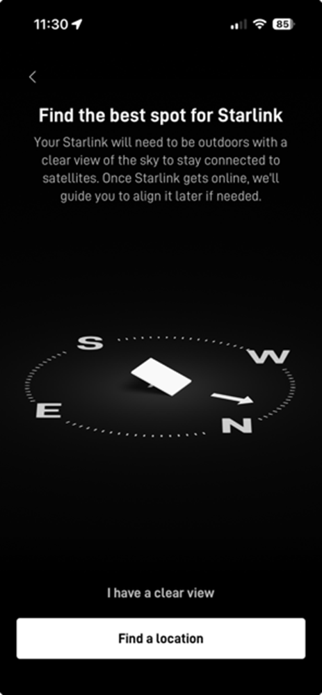 • Use the Starlink App to position the terminal in the
