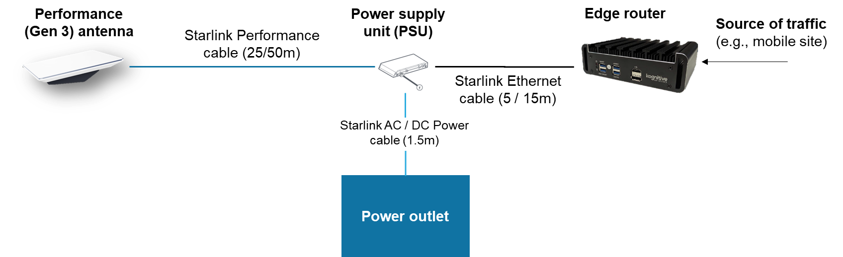 Starlink UT via RJ45 Ethernet cable.