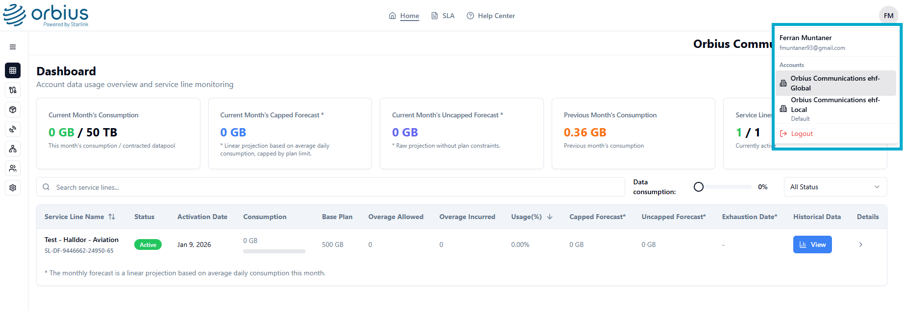 creation / Service line management / Data usage & billing / Portal access /
